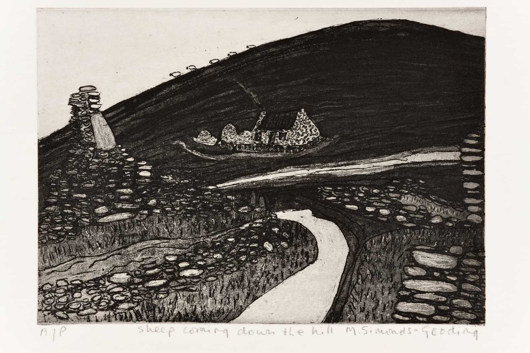 Sheep coming down the hill le Maria Simonds-Gooding